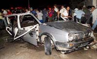 The missile, which witnesses said was fired by an airforce drone, ripped through a car carrying a senior field commander of Hamas's Izz el-Deen al-Qassam brigades, Khaled Abu Selniya, 33. He was killed and six passersby were wounded.