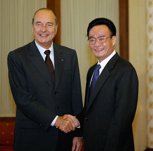 Wu, chairman of the Standing Committee of the National People's Congress, made the remark during a meeting with visiting French President Jacques Chirac in the Great Hall of the People in downtown Beijing.