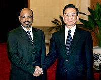This is Meles' second visit to China as prime minister. Previously, he visited China in October, 1995.