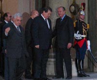 They held talks on Tuesday afternoon with French President Jacques Chirac in the French presidential Elysee palace, in company of Nasser al-Qidwa, permanent representative of the Palestinian Authority to the United Nations and Yasser Arafat's nephew, and Palestinian representative in Paris, Leila Shahid.