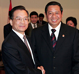 Wen Jiabao held talks with Indonesian President Susilo Bambang Yudhoyono in the Laotian capital of Vientiane.