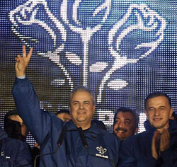 The center-right Justice and Truth alliance headed by Bucharest Mayor Traian Basescu won about 35 percent, a sharp increase from the 2000 poll. The Greater Romania Party got about 13 percent, down from 20 percent in 2000.