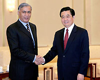 He met with visiting Pakistani Prime Minister Shaukat Aziz on Thursday afternoon in the Great Hall of the People in Beijing.