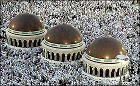 Some found time to receive mobile phone calls, as the majority tried to make their way round seven times softly muttering prayers and reading Koranic verses.