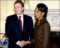 Rice's visit to London is part of a week-long tour of Europe and the Middle East, her first overseas trip as the US secretary of state in a bid to repair relations with key American allies after the divisions over Iraq.
