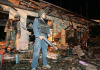 The bomb was planted in a pick-up truck parked in front of the hotel, killing five people and wounding at least 40 others, said local police.