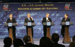 Bush said that he also discussed with his European counterparts on issues of common interest such as AIDS, anti-poverty and global warming. He said that the United States and the EU should work together on the research capacity to make the air cleaner.