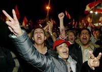 The government resignation drew enormous cheers from some 20,000 demonstrators who gathered at the Martyrs' Square in the heart of Beirut, brandishing Lebanese national flags and chanting anti-Syria slogans.
