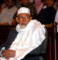 Bashir was acquitted in a separate trial in 2003 of heading Jemaah Islamiyah. He served an 18-month prison term for minor immigration violations and was arrested on his release from jail. He has been behind bars since shortly after the Bali bombings.