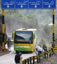 The bus carrying the passengers from Pakistani Kashmir reached Srinagar at least three and a half hours late because of delays caused by impromptu roadside receptions hosted by people, who ignored threats against the service by guerrillas.