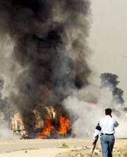 And in Baghdad there was a series of explosions, including a bomb that struck an oil tanker, sending thick clouds of black smoke pouring into the air over the east of the capital.