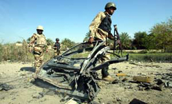 Shortly after Zoellick's arrival, a bomb blew up near the oil city of Kirkuk as a group of Iraqi guards was trying to defuse it, killing 12 and wounding four, the local police chief said.