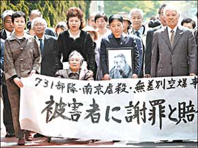 The 10 rebuffed plaintiffs include victims and family members of Japan's Unit 731, which conducted biological warfare experiments, the Nanjing Massacre and firebombing of Yong'an, Fujian Province.