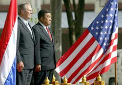 Flying in Thailand late Sunday, Rumsfeld also thanked Thailand for the efforts to help foreign nationals after the tsunami struck last year. He is scheduled to head for Norway Tuesday morning.