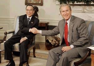 After talking with Bush, Khai was at the State Department to sign an agreement to cooperate on adoptions.