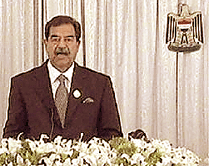 Saddam struck a defiant note against US threats, saying "One of the lessons of recent and distant history is that all empires and bearers of the coffin of evil, whenever they mobilized their evil against the Arab nation, or against the Muslim world, they were themselves buried in their own coffin."