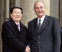 Echoing Zhu, Chirac expressed the hope to strengthen bilateral strategic dialogue and consultation on international issues, as well as his satisfaction with the preparations for hosting the Chinese cultural year in France.