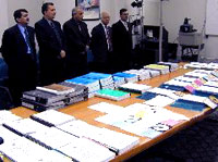 Two copies of the 12,000-page document arrived Sunday night at 8:40 PM (0140 GMT Monday) from Frankfurt, Germany. Chief UN inspector Hans Blix met his staff on board the flight, who brought the documents out of Baghdad in two black suitcases.