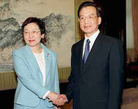 She also met State Councilor Tang Jiaxuan Monday. Tang said the two countries should pay high attention to and properly handle the issues of history and Taiwan which influence healthy bilateral ties.
