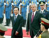Nastase was welcomed by Chinese Premier Wen Jiabao at the Great Hall of the People, where the two leaders reviewed a guard of honor before their meeting.