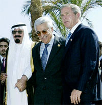In the first of two Mideast summits, the United States welcomed Arab promises to block financial support for terrorists and help the new Palestinian prime minister, Mahmoud Abbas, build a democratic state.