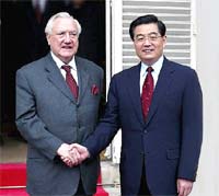 Chinese President Hu Jintao met in Paris Wednesday with French Senate President Christian Poncelet, and both vowed to further boost cooperation between legislatures of the two countries.