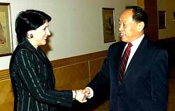 In talks with Georgian Minister of Foreign Affairs Salome Zurabishvili, who is paying an official visit to China and attending the 60th Session of the United Nations Economic and Social Commission for Asia and the Pacific (ESCAP), Li reiterated China's stance on the issues of Taiwan and Tibet.