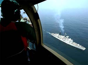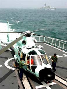 The first ever joint naval exercise between China and India was put under the spotlight on Nov. 14, 2003. This was another achievement in Sino-Indian exchanges since Indian Minister of Defense George Fernandes visited China in April this year. In the exercise, the Indian fleet, comprising three warships, the guided missile destroyer INS Ranjit, the guided missile corvette INS Kulish and the fuel tanker INS Jyoti, joined the Chinese navy in the search and rescue exercises off the coast of Shanghai, with more than 1,500 navy officers and soldiers. Chinese soldiers also observed other anti-terrorism military exercises in other countries.