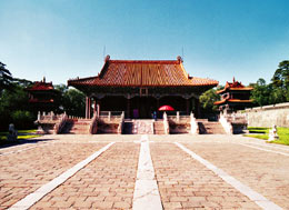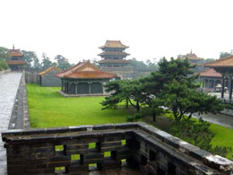 Originally known as Xingjing Tomb and built in 1598, this mausoleum lies south of Qiyun Mountain near the Suzi River and northwest of the Yongling Township in Xinbin. It was restored many times during the Kangxi and Qianlong reigns and renamed Yongling in 1659. It covers an area of about 12,000 square kilometers surrounded by mountains and rivers that create the impression of luxuriant surroundings. Four of Nuerhachi's ancestors are buried in this tomb: his father, Takeshi; grandfather, Juechangan; great-grandfather, Fuman; and one other, Gaitemu.