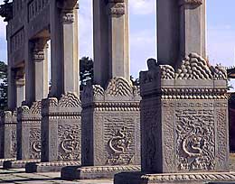 The Zhaoling Tomb is the finest sight in Shenyang. Set in a huge park, the tomb is the burial place of Huangtaiji (1592-1643), who founded the Qing Dynasty, and Empress Boerjiteshi. The tomb took eight years to build and the impressive animal statues on its approach are reminiscent of Ming tombs.