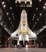 Discovery will be lifted vertical to the top of the building, then turned, lowered and attached to the solid rocket boosters and external fuel tank. NASA passed a significant milestone in it's two year quest to return the shuttle fleet to flight.