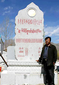 According to plan, a ribbon-cutting ceremony will be held at the base camp in May when Chinese surveyors return to write the accurate height of Mt. Qomolangma on the monument.