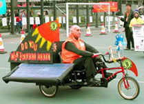 A participant takes a rest on his solar-powered vehicle before the third solar-powered vehicles competition in Hong Kong, China, Dec. 8, 2002. Twenty-seven teams participated in the competition, opened on Dec. 8.