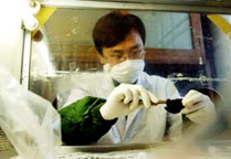 Researchers of Jilin University in Changchun, capital of northeast China's Jilin Province, analyze brain organs distilled from the skull of the hostess of the Laoshan tomb in Beijing dating back to the Han Dynasty (206 BC-220 AD) Dec. 24, 2002.