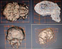 The picture taken on Aug. 15, 2003 shows a three-dimensional image of No. 2 "Yunxian Man" fossil human skull in Wuhan, capital of central China's Hubei Province.