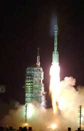 Whenever Shenzhou V roars into space it will be perched atop a Long March 2F booster, departing from Jiuquan Space Launch Center in northwestern Gansu Province. Touchdown of the craft is expected to be on Inner Mongolian grassland.
