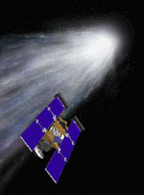 As the spacecraft sailed through the hailstorm of comet debris, a tennis- racket-shaped collector would capture and store particles coming off the comet's nucleus.