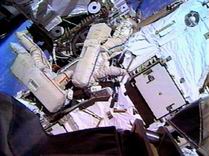 Russian Gennady Padalka and American Michael Fincke walked out of the capsule at 1:19 AM (2119 GMT), and five hours and forty minutes later they returned to the ISS, a spokesman for the mission control said.
