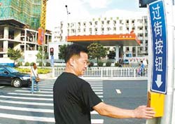 Shenzhen's first manually operated pedestrian traffic light has gone on trial at an intersection near Jingxiu Middle School on Lianhua Road in Futian.