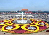 Tian'anmen Square will be the grandest site to view the festive mood. More than 500,000 flowerpots with 100 different species of flower will be placed throughout the square. A 17.5-meter-high satellite tower, modeled after Shenzhou 5 and weighing 40 tons, also stands at the east part of the square. Fountains, surrounded by flowers, will be centered on the square.