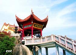 Rising in Qingyang County of Anhui Province, Mount Jiuhua consists of ninety-nine peaks, among the most magnificent being Heavenly Terrace (Tiantai), Lotus Flower (Lianhua), Sky Pillar (Tianzhu), and Ten Kings (Shiwang).