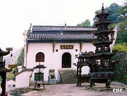 The area around the mountain is secluded -- a quiet landscape of streams, cascades, crags, caves, pines, and bamboos. Tang Dynasty and culminated in the Ming and Qing dynasties, when with over three hundred temples and monasteries enveloped in coiling incense smoke, Mount Jiuhua became known as the "land of Buddhas and incense." At present 78 temples remain, including Huacheng, Flawless Monk, Hujiu, and Baisui temples, which house thousands of statues and relics such as Buddhist sutras and jade seals.