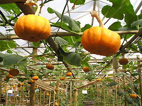 Pumpkins in the agricultural conservatory exhibiting over a hundred varieties of vegetables and fruit