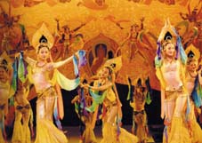 The Tang Dynasty was a time when all people, from the emperor to the lowest commoner, regarded being bestowed with an aptitude for singing and dancing as a great honor. This was the zenith of performance art in ancient China, when there were more than 100 large-scale dances. Unfortunately, hardly any Tang court dances survived. The Rainbow Skirt and Feather Coat Dance, for instance, was never performed again after the An-Shi Rebellion of A.D. 755. Li Yu, emperor of the Southern Tang (937-975), later wanted to re-stage the Rainbow Skirt and Feather Coat Dance, but failed owing to social disturbances and inadequate finance. For the one thousand years or so that followed, it was only possible to imagine the grandeur of Tang dances from poetry. Then, in the 1980s, on discovering that the dance scenes depicted in the Mogao Grottoes murals concur with descriptions of dances in Tang poetry, it became possible to recreate their splendor. Choreographers subsequently recreated the Tang dances according to these murals, and they began to be performed once more. Dance dramas created in the 1980s include Flower Rain on the Silk Road, A Great Dream of Dunhuang, Imitating-Tang Music and Dance, Going West of Yangguan, and Sword Dance. The dance drama Dunhuang Ancient Music included 25 pieces of Tang music discovered and deciphered by scholars and were performed for the first time. Tang dance thus became a new genre in China, and in less than 20 years is popular once more. Imitating-Tang Music and Dance and Chang'an Music and Dance have been staged over 10,000 times. A whole new wave of Tang music and dance has now emerged in China after a silence of 1,000 years, and the response it evokes is as rapturous as ever.