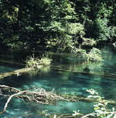 Shuzhen Waterfall, 25 meters high and 72 meters broad on top. Water is divided into numerous water currents by numerous thickets on the slopes and blocked by ring-shape calcsinter. Then the waterfall present tourists such a scene as so many lotus-shape small waterfalls go down the steps of a ladder. Seen afar, they are like sleeping lotus, shining and graceful in the sun but never withering.