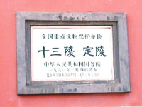 Getting there: Taking a one-day tourist bus is a good option. Tourist bus numbers 1, 2, 3, 4, 5, which can be boarded at Qianmen, Hepingjie Beikou, Dongzhimen and some other places, all get you there (though they don't visit Zhaoling.) Another option is to take the bus to Changping District, then transfer to a small bus to travel the rest of the way. You can also take a taxi from Changping for going onward. The fare is about 10 yuan (US$1.2). If you drive yourself, take the Badaling Highway from Madian, then follow the signs to Changping.