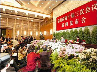 Les journalistes chinois et étrangers pourront couvrir la séance d'ouverture, la séance de cl?ture et trois réunions plénières de la troisième session du Xe Comité national de la CCPPC, a indiqué M. Wu. Les discussions de certains groupes et des groupes des milieux déterminés seront ouvertes aux journalistes chinois et étrangers.