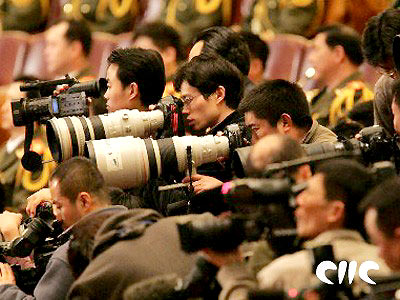 Journalistes présents à la cérémonie d'ouverture de la troisième session du Xe Comité national de la CCPPC