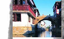 | Le Double Pont est composé du pont Shide, en vo?te, et du pont Yong'an, à poutre de pierre, qui se croisent. On l'appelle aussi le Pont en forme de clé, du fait de sa forme d'une clé de l'ancien temps. En 1984, le peintre chinois résidant aux Etats-Unis Chen Yifei, a peint le Double Pont dans Souvenir de mon pays natal, et l'a exposée avec d'autres de ses ?uvres dans la galerie d'Armand Hammer, président de Occidental Petroleum. Zhangting est l'un des rares batiment des Ming qui existent à Zhouzhuang. Après restauration, cette ancienne résidence d'une famille riche a repris sa forme initiale. Même après plus de 500 ans, Zhangting en impose toujours par sa magnificence. |