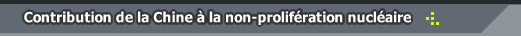 | La prolifération d'armes nucléaires, qui met en péril la paix et la sécurité dans le monde, va à l'encontre des intérêts fondamentaux de la Chine. Celle-ci s'acquitte strictement des obligations de prévention de la prolifération des armes nucléaires, contenues dans le TNP, poursuit invariablement une politique consistant à ne pas proposer, ni encourager ni entreprendre la prolifération des armes nucléaires, à ne pas aider un autre pays à développer l'armement nucléaire, et s'oppose fermement à la diffusion d'armes nucléaires à quel pays que ce soit, sous quelle forme que ce soit. |